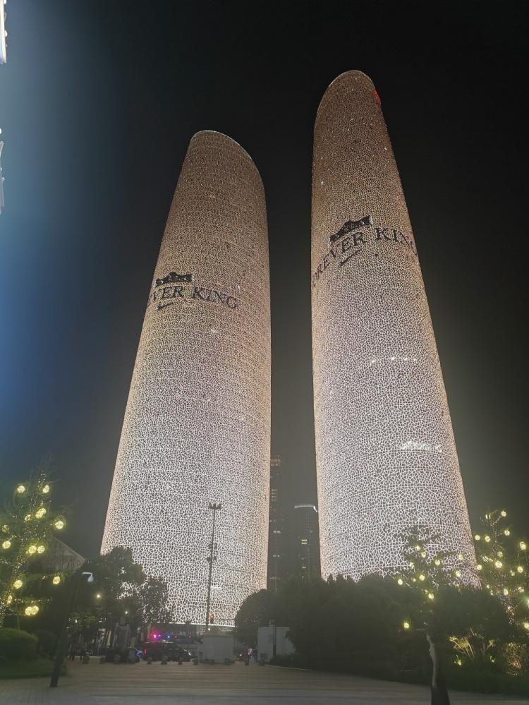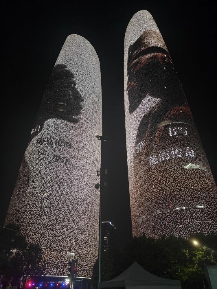 据很多位网友和“詹姆斯吧官方微博”爆料,成都地标性的建筑金融城“双子塔”为迎接詹姆斯中国行也点亮灯光秀。