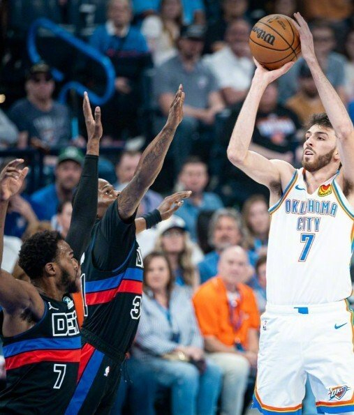 加时赛最后48秒亚历山大三分出手造成犯规,活塞队挑战失败,随后亚历山大三罚全中,111-106雷霆取得5分优势。在被活塞追到只差2分后,亚历山大顶住压力两罚全中,活塞最后时刻无力回天,雷霆114-110赢下胜利。