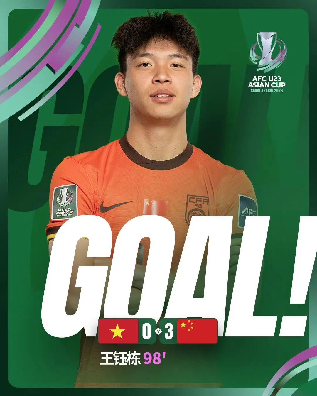 第73分钟,“带刀后卫”彭啸再度破门,但主裁判在观看视频回放后,判定中国队李镇全越位在先,取消进球。补时阶段,拜合拉木助攻王钰栋破门,中国队锁定胜局。