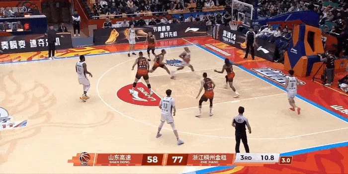 CBA常规赛,浙江对阵宁山东的比赛正在进行中。第三节比赛中,安德鲁斯带球上篮轻松得分,浙江三节领先山东21分。CBA常规赛,浙江对阵宁山东的比赛正在进行中。第三节比赛中,安德鲁斯带球上篮轻松得分,浙江三节领先山东21分。